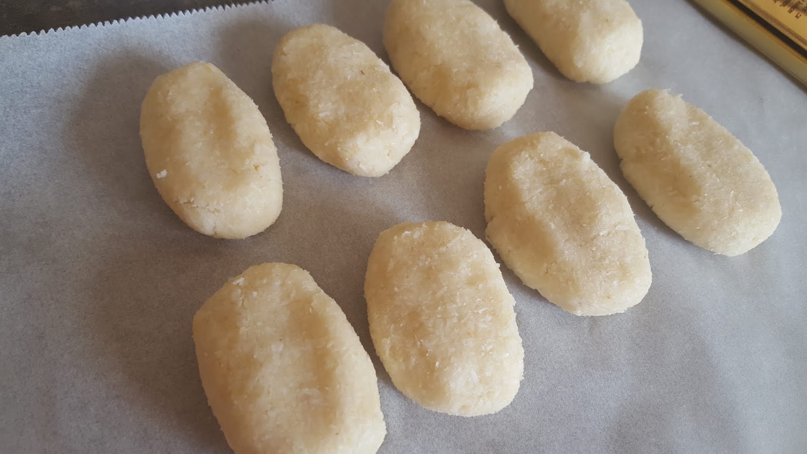 Rajoutez un peu de crème de coco si la pâte n’est pas assez malléable (tout dépend de votre farine). Il faut que le mélange s’agglomère bien sans coller au doigts.