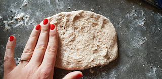 Dégazez-la, en la travaillant rapidement sur votre plan de travail légèrement fariné. Séparez la en 4 boules.