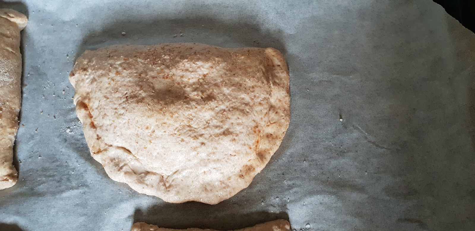 6. Étalez chaque boule en formant 4 disques (3 mm environ d’épaisseur). Placez-les sur une plaque allant au four recouverte de papier sulfurisé.