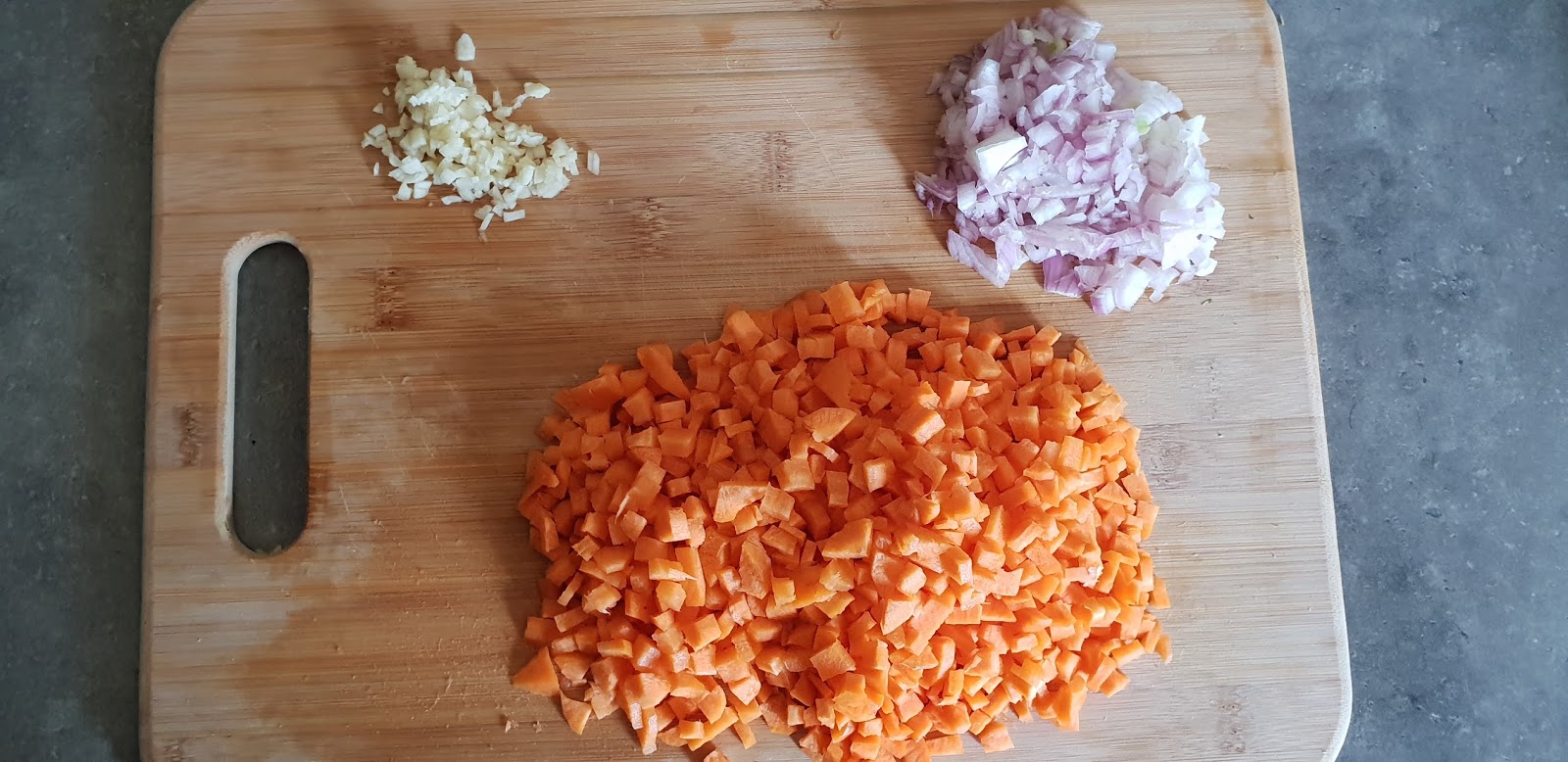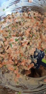 6. Ajoutez les lentilles, le mélange carottes/oignon/ail (sans le jus de cuisson!), la ciboulette ciselée.