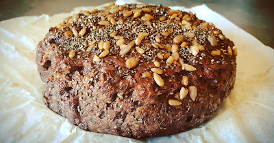 La texture est juste parfaite et je peux m’amuser à faire du pain. Je varie les ingrédients : les farines (farine de lupin, de lentilles vertes, de lentilles corail, de châtaigne, de riz complet, de sarrasin, d’amarante, de teff, de quinoa,…), les graines (tournesol, pavot, sésame noir, courges, chanvre, chia,…) et les fécules.