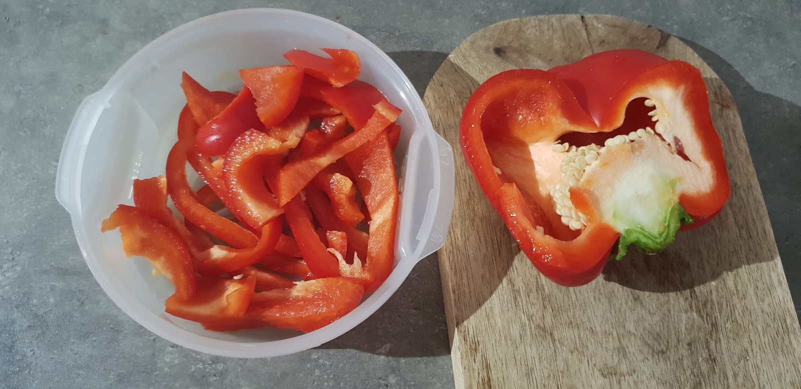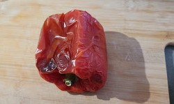 Ensuite laissez-le refroidir, retirez la peau et épépinez-le. Réservez la moitié .