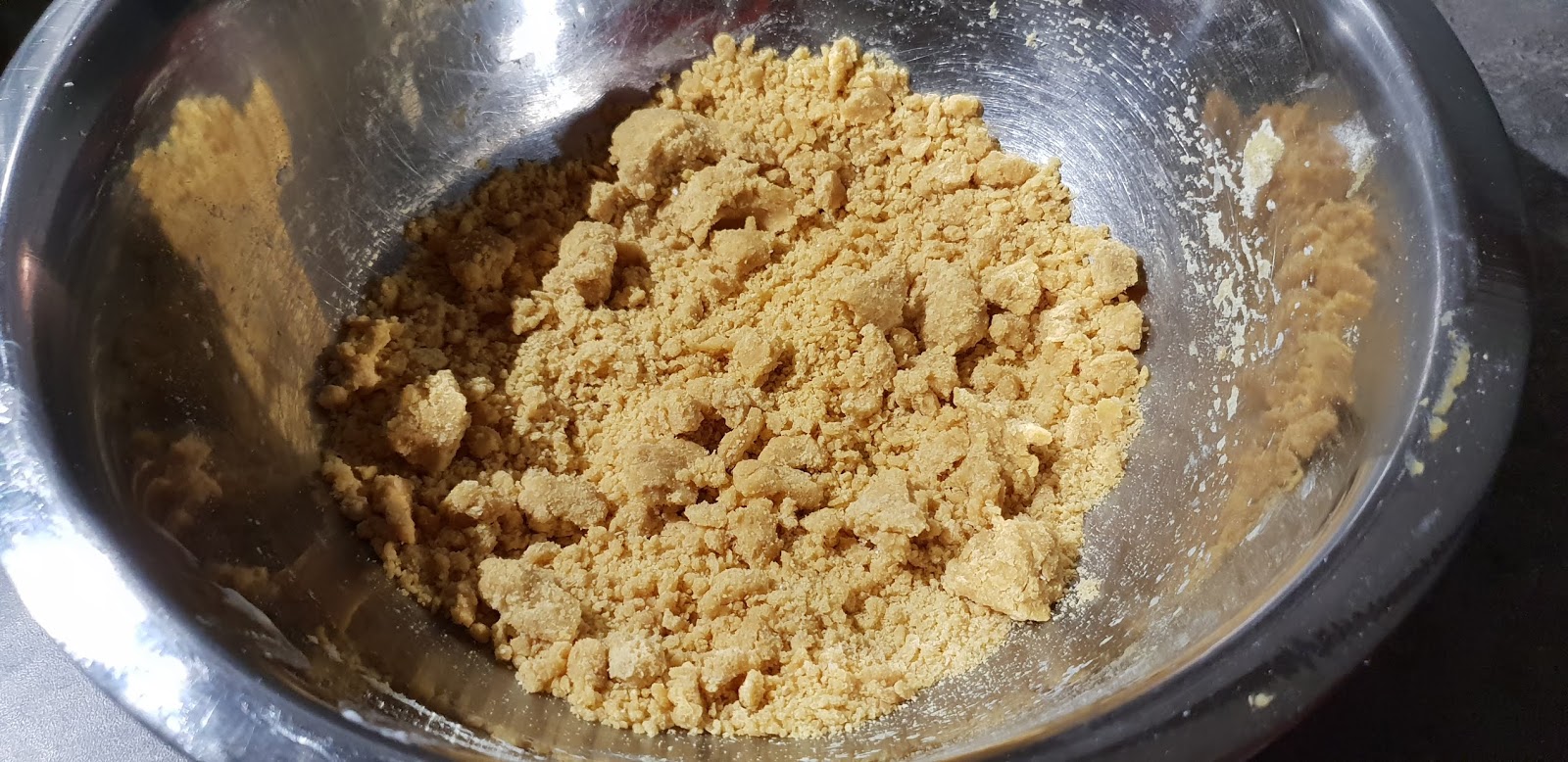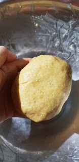 4. Une fois que vous obtenez une pâte homogène et malléable, formez une boule et filmez-la. Réservez au frigo 30min minimum.