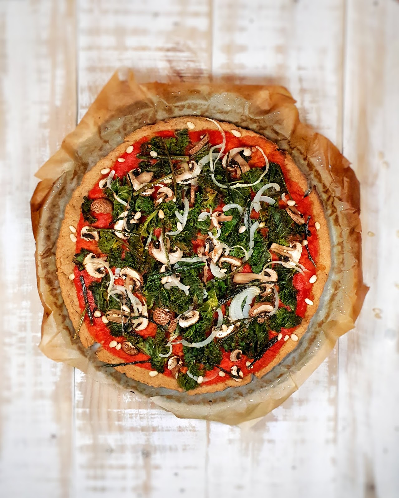Je voulais une recette de pâte à pizza sans gluten. Le soucis, chaque fois que je trouvais une recette de pizza sans gluten qui m’avait l’air appétissante et pas raplapla, elle contenait beaucoup de fécule et souvent de la farine de riz dont l’indice glycémique n’est pas vraiment top du tout. Evidemment, c’est mon choix de consommation que de vouloir éviter ce type de farine pour ma pizza ^^, on peut se faire plaisir bien entendu!           Donc je voulais obtenir un bon équilibre et retrouver en même temps de la gourmandise, du moelleux, du croustillant avec du « sans gluten » et l’ensemble de la recette devait être saine.Je suis comblée car j’ai trouvé ma recette!