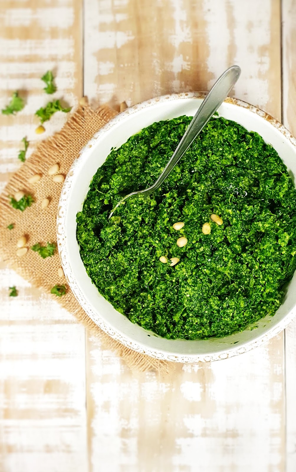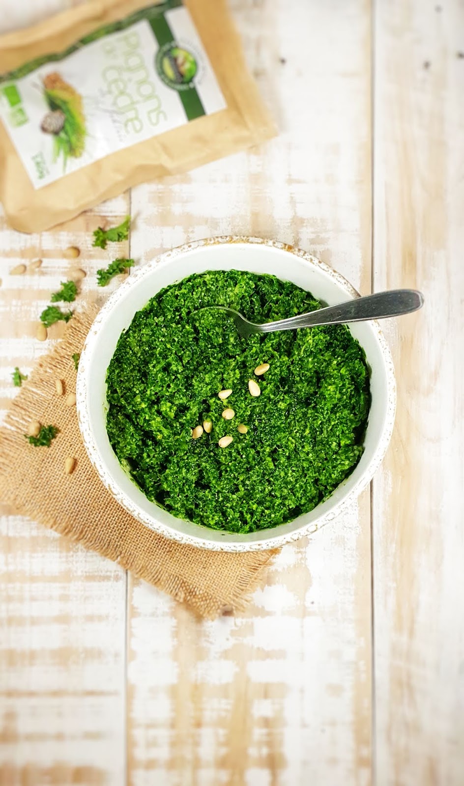 Je suis fan du pesto mais le problème c’est qu’il n’y a pas de basilic toute l’année. Par conséquent, voici une recette de pesto d’hiver.
