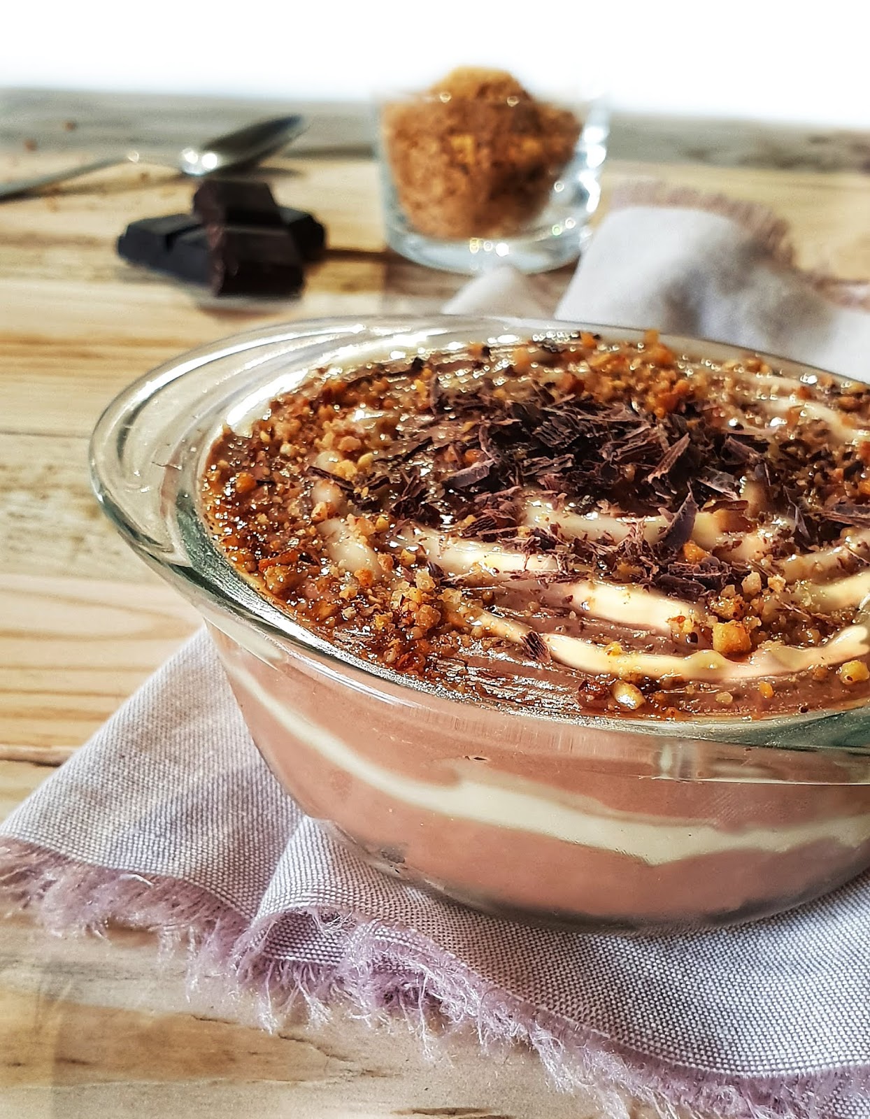 facultatif : parfois comme sur la photo je rajoute 1 à 2 càs de beurre d’oléagineux, ex : amandes, cacahuète… j’alterne couche de crème et beurre d’oléagineux.