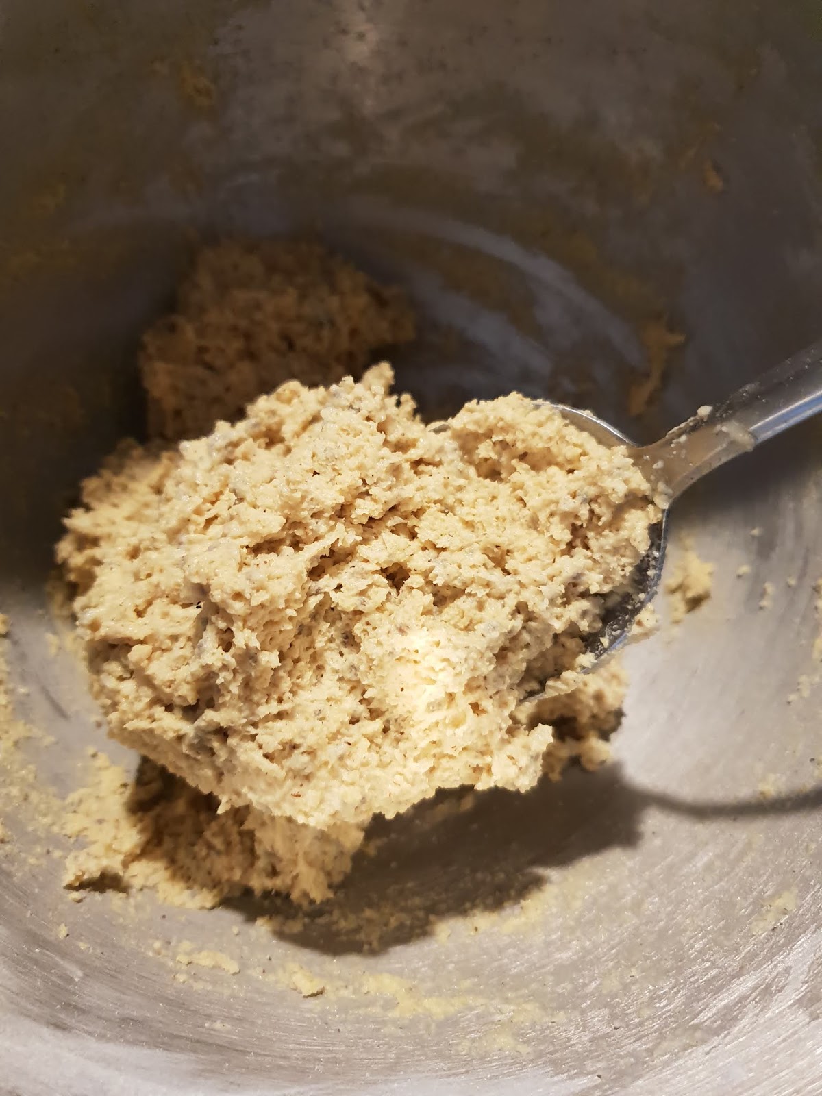 Mélangez tous les ingrédients secs ensemble et ajoutez ensuite le reste des ingrédients *. Mélangez bien le tout à la cuillère jusqu’à obtenir une pâte homogène qui colle un peu.