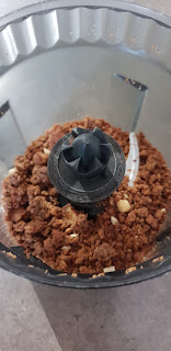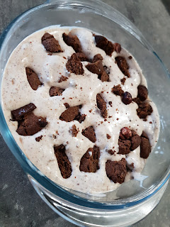 3/ Mixez légèrement 60g de cookies (environ 2 cookies) et incorporez à la préparation précédente.