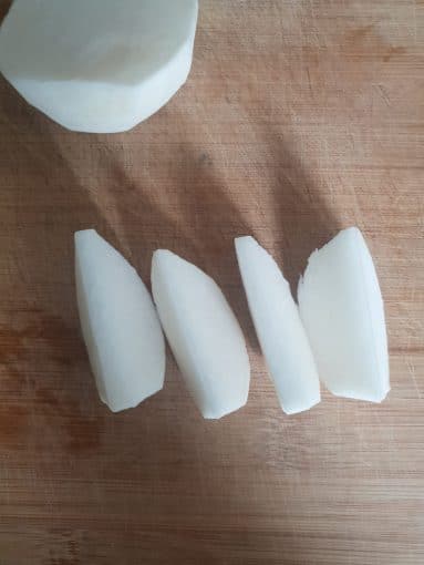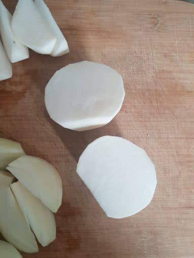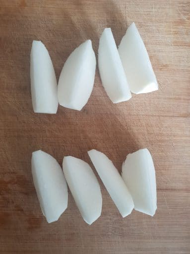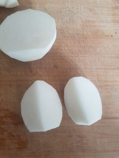 Eplucher les navets, les couper en en 8 quartiers (voir photo).
