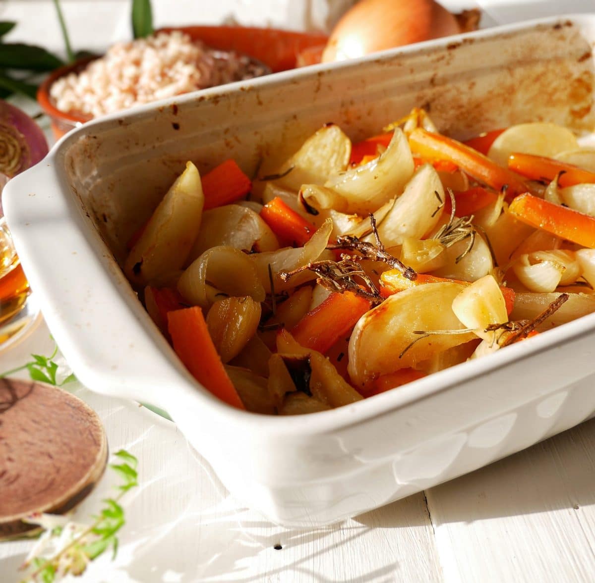 Voici une recette de gratin aux légumes d’hiver avec une béchamel gourmande vegan protéinée. les graines et raisins apporte un vrai relief.